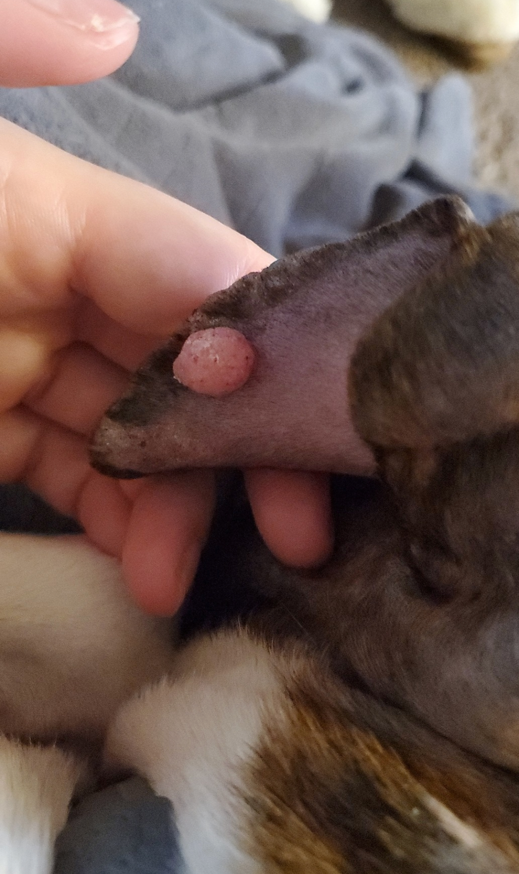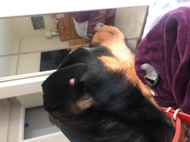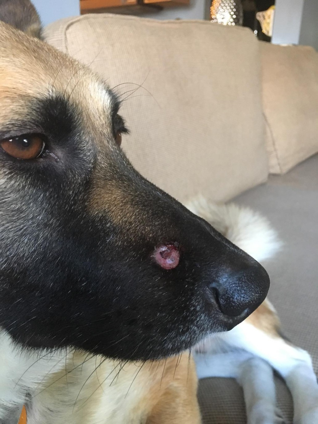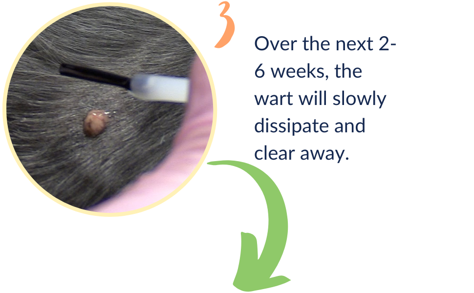 "The picture I attached is after a couple of days of treatment. The wart above her eye was still pretty irritated (likely from rubbing her head and face on the carpet). It was probably the size of raspberry when we started. It is now the size of a dried-up small pea. It is not irritated or raw and it is barely noticeable. Product smells horrible, but no other complaints. The dog does not seemed to be bothered either way🐶. Vet said surgery to remove, but so far I am pleased treating without surgery. I am glad I tried it😊"