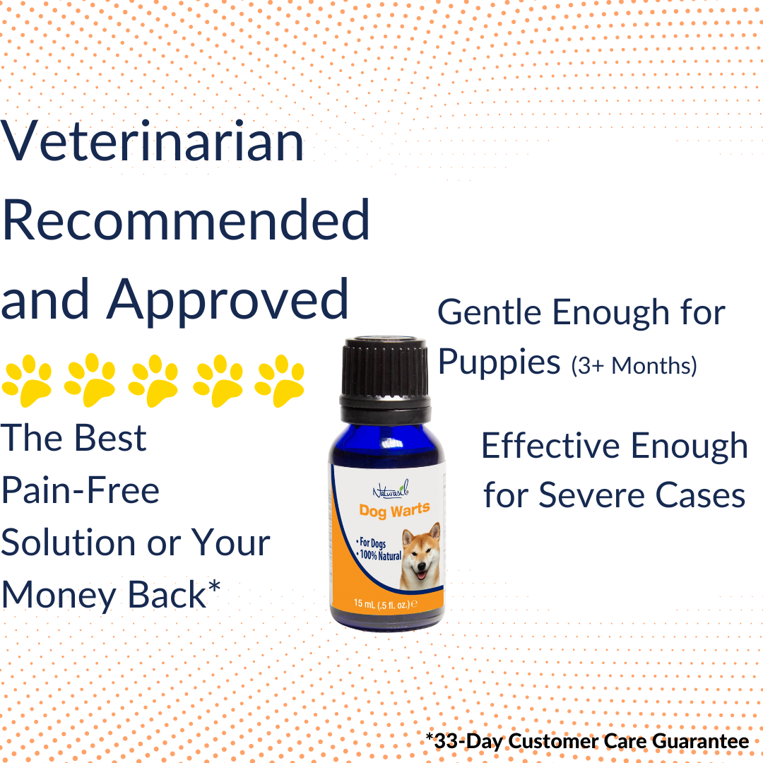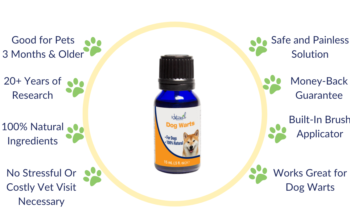 Naturasil Dog Wart Remover assists in eliminating all strains of dog warts common to dogs, without the pain, scarring, or harsh treatments found in many traditional methods.