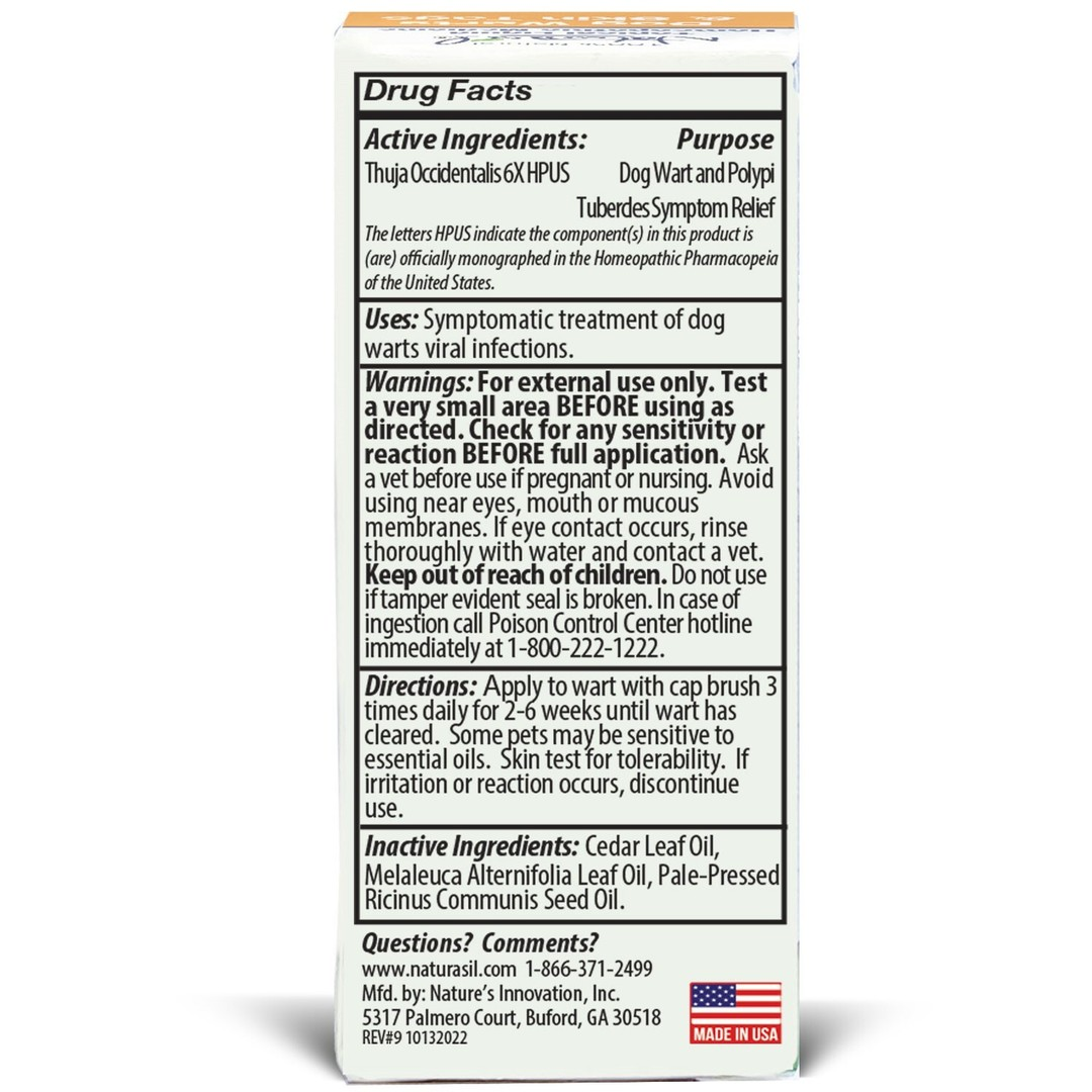 Naturasil Dog Warts Remover is a natural homeopathic pet wart remedy formulated for all common papilloma's. Comprised of natural plant extracts, Naturasil Dog Warts Remover assists in the elimination of warts without the pain, scarring, or harsh treatments found in many traditional methods. Naturasil Dog Warts Remover assists in causing warts to dry up and painlessly flake away.
