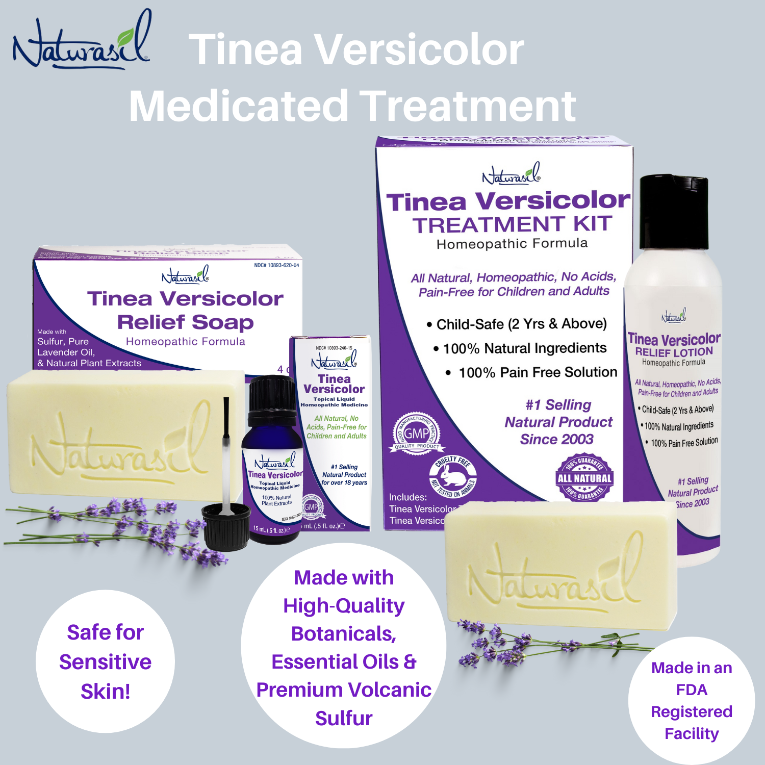 The complete solution consisting of relief soap and topical oil is complimented by the sun and is critical in eliminating of Tinea Versicolor. Maximize your results with exposure to assist in obtaining the best results.