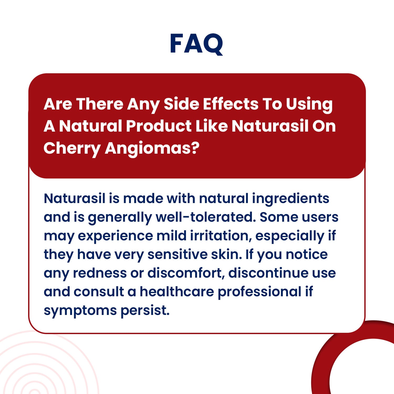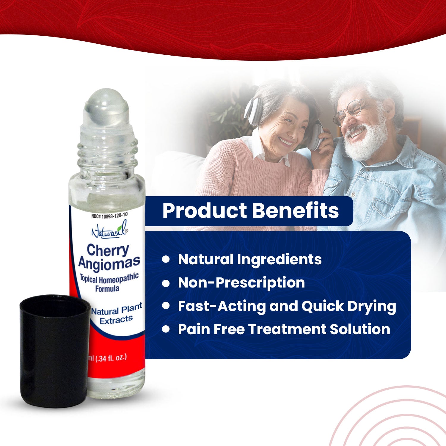Naturasil for Cherry Angiomas is a painless remedy that assists in reducing the appearance of Cherry Angiomas, also known as Cherry Hemangiomas or Campbell de Morgan spots.