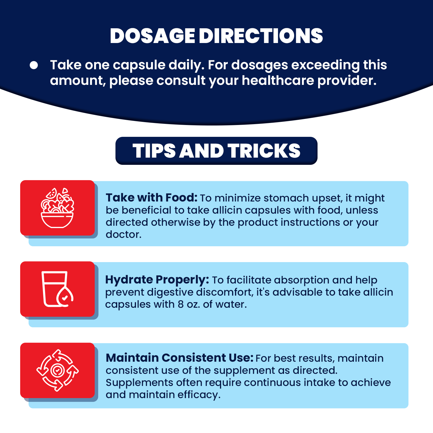 Our supplement introduces the essence of garlic using a patented extraction method, meticulously crafted to isolate allicin—the dynamic component of garlic.