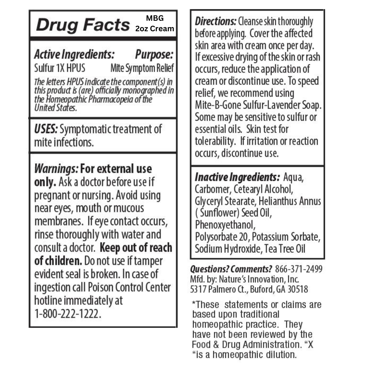 Cleanse the skin thoroughly before applying Mite-B-Gone Sulfur Mite Cream.