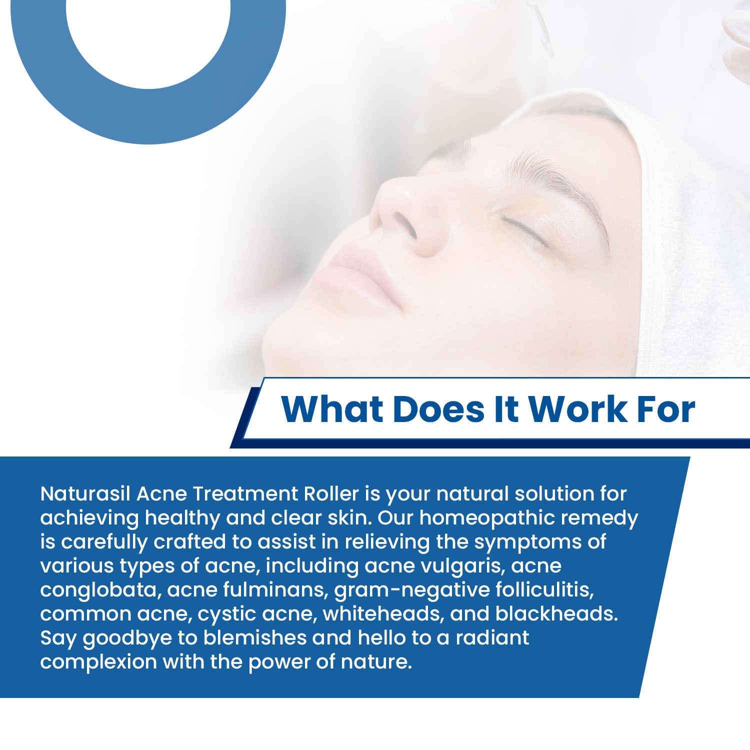 Naturasil Acne Treatment Roller is your natural solution for achieving healthy and clear skin. Our homeopathic remedy is carefully crafted to assist in relieving the symptoms of various types of acne, including acne vulgaris, acne conglobate, acne fulminans, gram-negative folliculitis, common acne, cystic acne, whiteheads, and blackheads. Say goodbye to blemishes and hello to a radiant complexion with the power of nature.