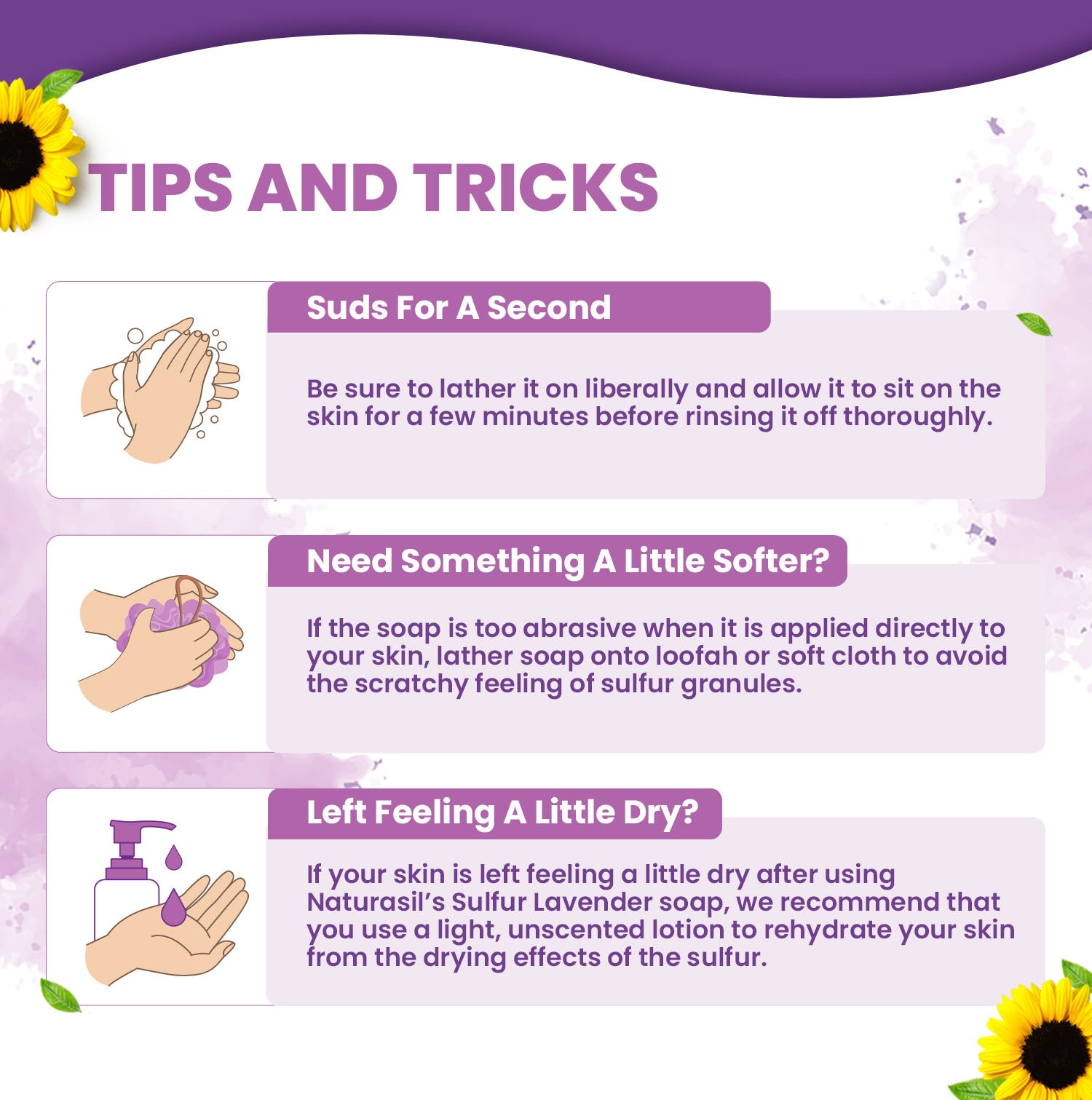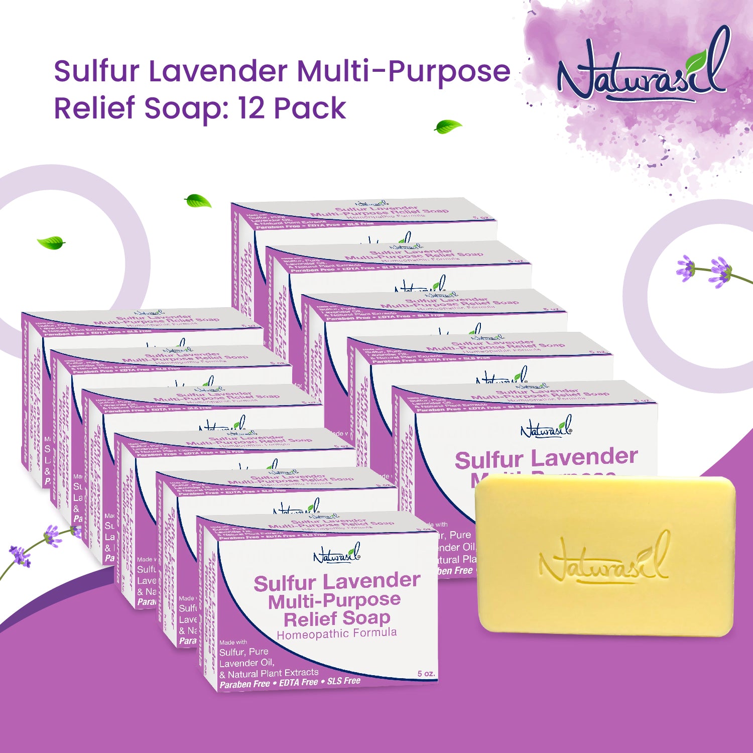 Discover the healing power of Naturasil Premium Sulfur Lavender Treatment Soap, your go-to solution for a range of skin conditions. Formulated with micronized volcanic sulfur, this maximum-strength concentrated medicated soap offers unparalleled efficacy in treating skin ailments. It's a natural sulfur treatment that harnesses the potent antibacterial properties of sulfur to help combat acne effectively, human mites, fungal infections, warts, and the discomfort caused by poison ivy, oak, and sumac.